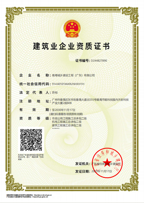 建筑、市政、机电总承包二级、地基基础专业承包二级。公路交通工程(公路安全设施分项)专业承包二级、公路交通工程(公路机电工程分项)专业承包二级